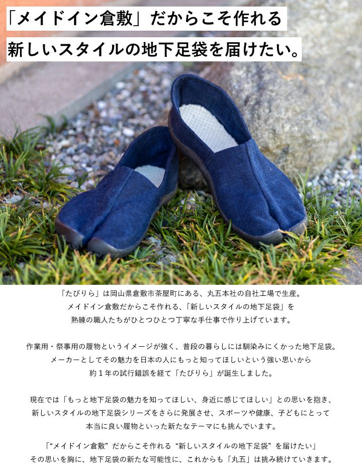 他の画像を見る 【当店限定カラー】はだしのような履き心地を実感できる足袋型コンフォートシューズ 【限定カラー】丸五 たびりら 足袋型 コンフォートシューズ TabiRela デニム メンズ レディース ゴム底 幅広 日本製 倉敷 外反母趾 靴 フラット 歩きやすい 履きやすい 室内 屋内 屋外 健康 血行促進 セカンドシューズ おしゃれ カジュアル 着物 浴衣 祭り 素足 MARUGO 本体価格 ¥ 9,000 税込 在庫切れ カートに入れる お気に入りに登録する
