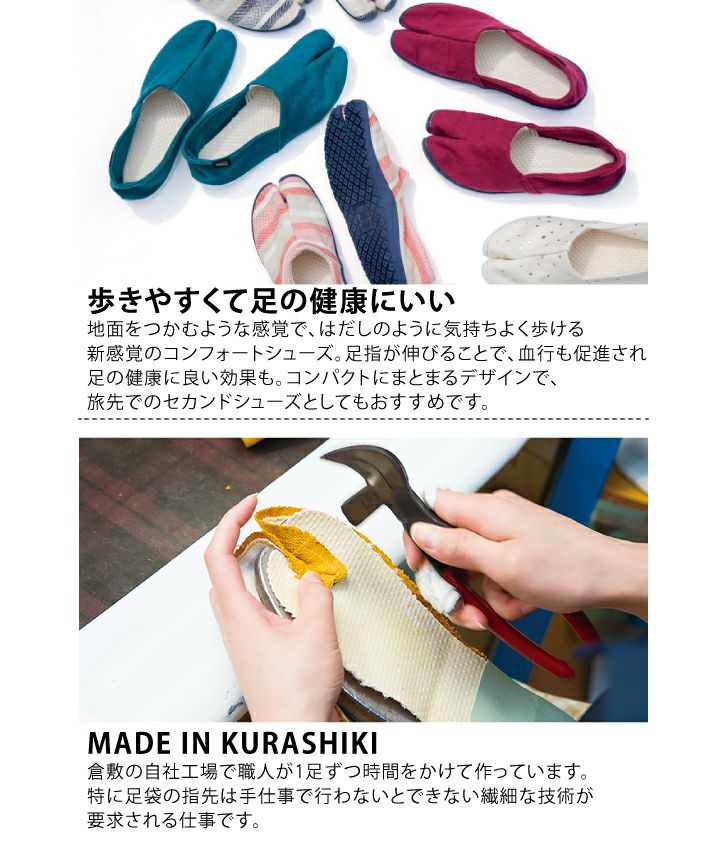 他の画像を見る はだしのような履き心地を実感できる足袋型コンフォートシューズ 丸五 たびりら TabiRela 男女兼用 メンズ レディース 綿 ゴム 標準 幅広 日本製 倉敷 手づくり 全9色 足袋 足袋型 外反母趾 コンフォート シューズ 靴 MARUGO フラット 歩きやすい 履きやすい室内 屋内 屋外 健康 血行促進 新感覚 セカンドシューズ おしゃれ カジュアル 素足 本体価格 ¥ 9,900 税込 詳細を見る お気に入りに登録する