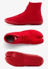 ミドルカットタイプの足袋型スニーカー。甲の高さに合わせて調整可能な靴ひもタイプ。