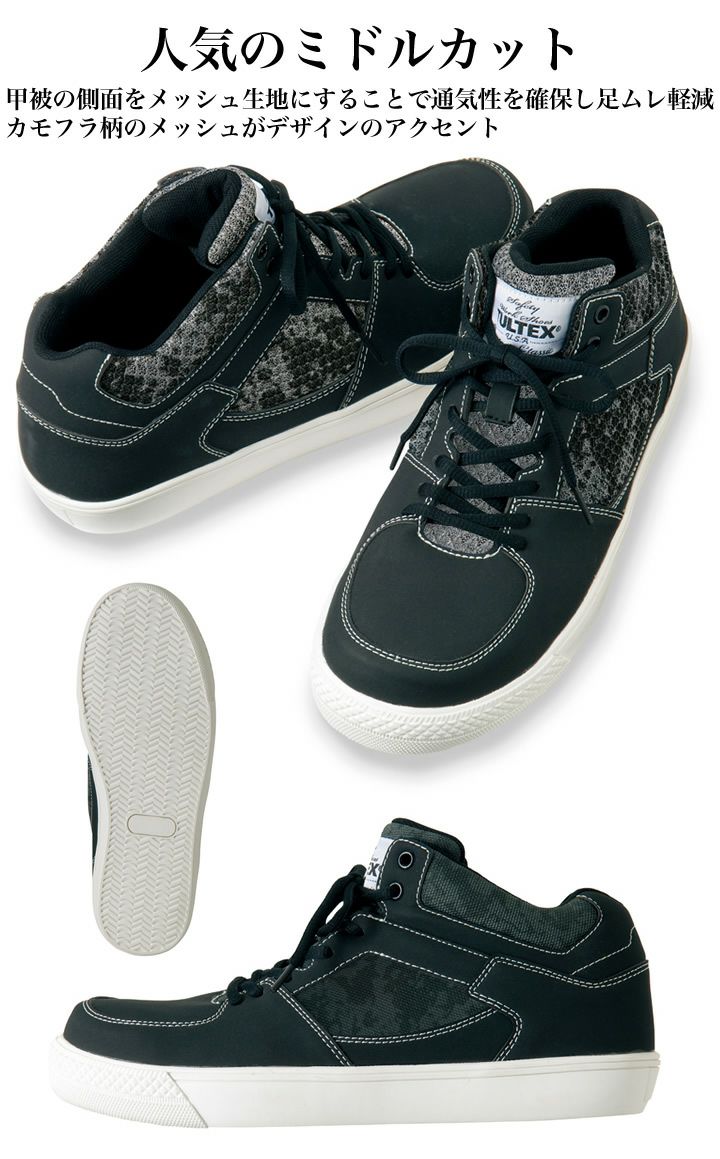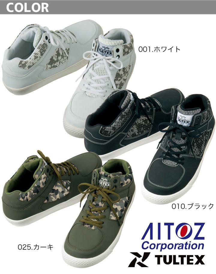 他の画像を見る 甲被の側面をメッシュ生地にすることで通気性を確保し足ムレ軽減カモフラ柄のメッシュがデザインのアクセント 安全靴 アイトス AZ-51650 ミドルカット TULTEX カモフラ 迷彩柄 セーフティシューズ 男女兼用 メンズ レディース メッシュ 紐タイプ 作業靴 本体価格 ¥ 3,740 税込 カートに入れる お気に入りに登録する