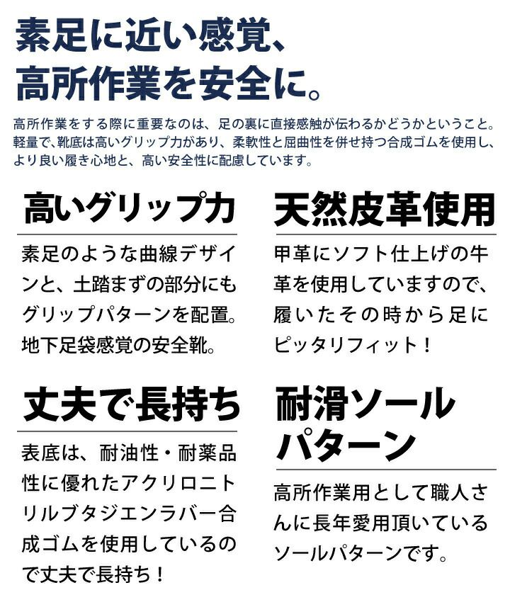 他の画像を見る 地下足袋感覚で足にフィットする軽作業用安全靴 高所作業用安全靴 L53-H1 L53H1 青木産業 セーフティシューズ セーフティブーツ JIS T 8101 L種 耐油性 耐薬品性 オールハトメ ファスナー無し チャック無し 編上靴 柔らかいベロア革 かっこいい おしゃれ 地下足袋感覚 足にフィット 本体価格 ¥ 8,500 税込 在庫切れ カートに入れる お気に入りに登録する