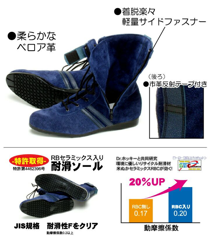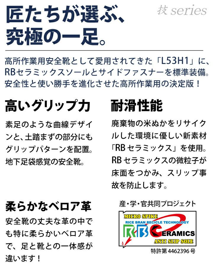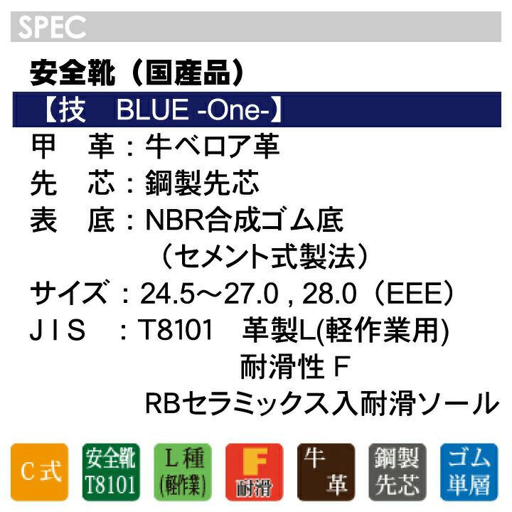 他の画像を見る L53-H1に耐滑ソールとサイドファスナーを装備した高所作業用の決定版! 高所作業用安全靴 技 Blue-One- WAZA 青木産業 セーフティシューズ セーフティブーツ 青 ブルー JIS T 8101 L種 耐滑性F サイドファスナー チャック 柔らかいベロア革 かっこいい おしゃれ 本体価格 ¥ 11,300 税込 在庫切れ カートに入れる お気に入りに登録する