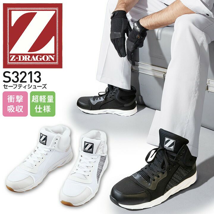 Z-DRAGON 安全靴 セーフティシューズ S3213 ミドルカット 衝撃吸収 超軽量 紐タイプ 自重堂 作業靴