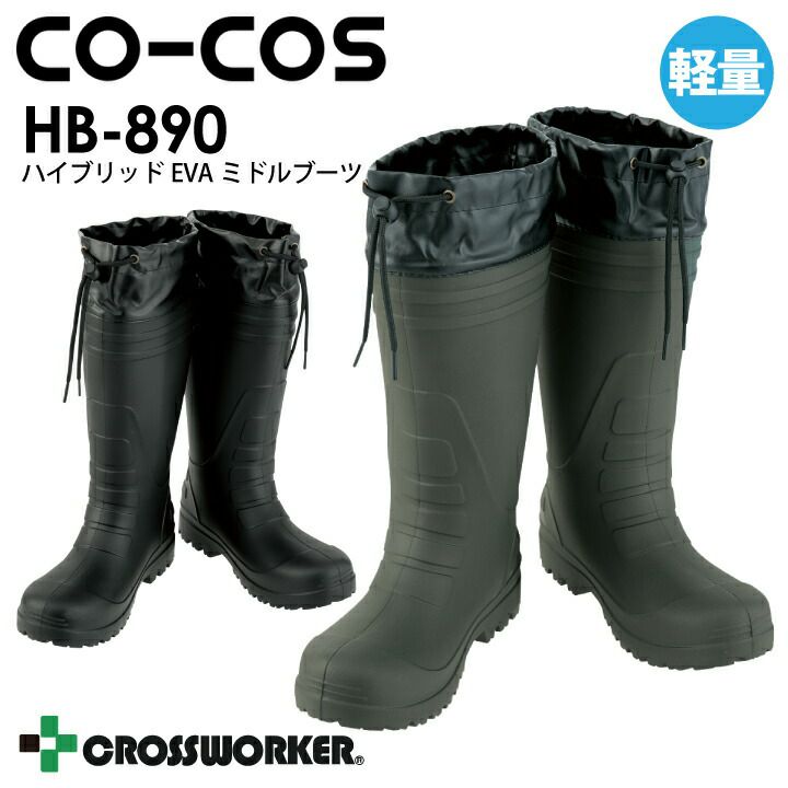 長靴 カバー付き HB-890 ミドルタイプ コーコス信岡 HB890 軽量 軽い 先芯なし レインブーツ メンズ レディース 男女兼用 作業用 EVA ガーデニング 洗車 アウトドア キャンプ 柔らかい 動きやすい 軽作業 農業 農作業 アーミー感 かっこいい 可愛い おしゃれ シンプル