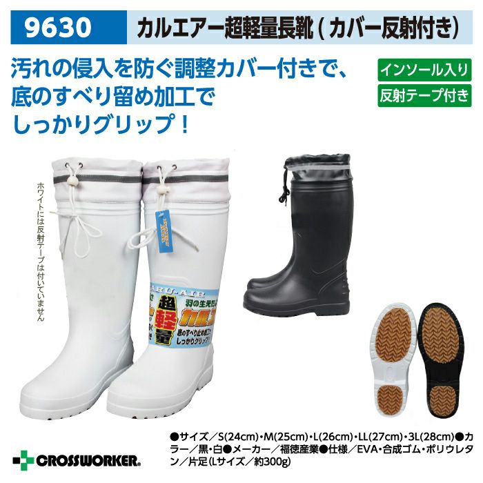 福徳産業 カルエアー 超軽量長靴 9630(ブラックはカバーに反射付き)【カバー付長靴 作業用長靴 レインブーツ メンズ 男性用 工場 厨房