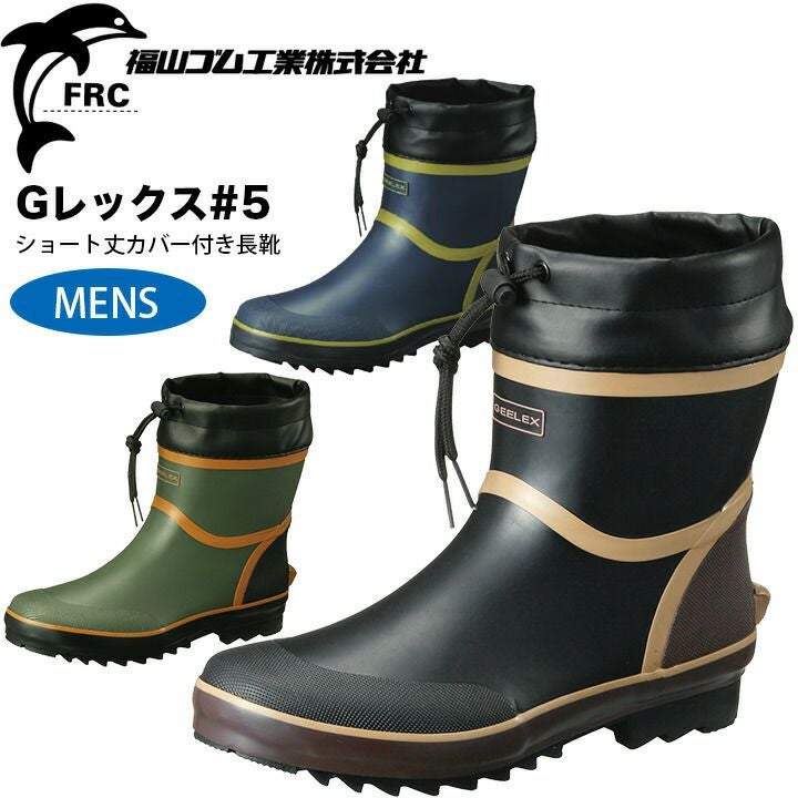 ショート丈カバー付き長靴 福山ゴム Gレックス #5 男性用 軽量 レインブーツ ショートブーツ ガーデニング 農作業 釣り アウトドア 作業用 作業靴