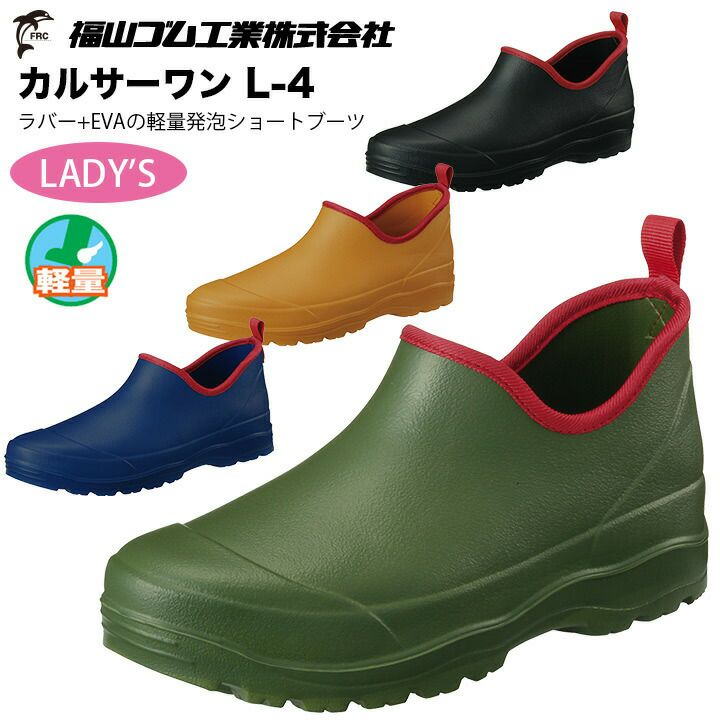 ショートブーツ 福山ゴム カルサーワン L-4 女性用 軽量 レインブーツ ガーデニング 農作業 農業 園芸 家庭菜園 アウトドア 作業用 作業靴 長靴 おしゃれ 可愛い バイカラー ツートンカラー カーキグリーン
