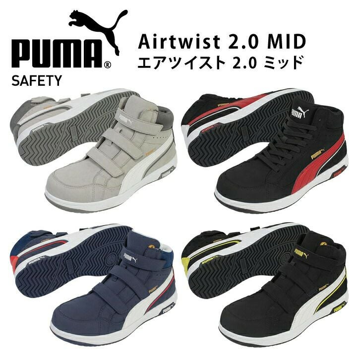2023 新商品 プーマ PUMA 作業靴 安全靴 紐なし 紐あり セーフティシューズ プーマ安全靴 プーマ作業靴 安全スニーカー ミドルカット AIRTWIST 2.0 MID H&L エアツイスト ヘリテイジ Heritage ローカット 静電 あんぜんくつ ブラック ネイビー グレー 新作