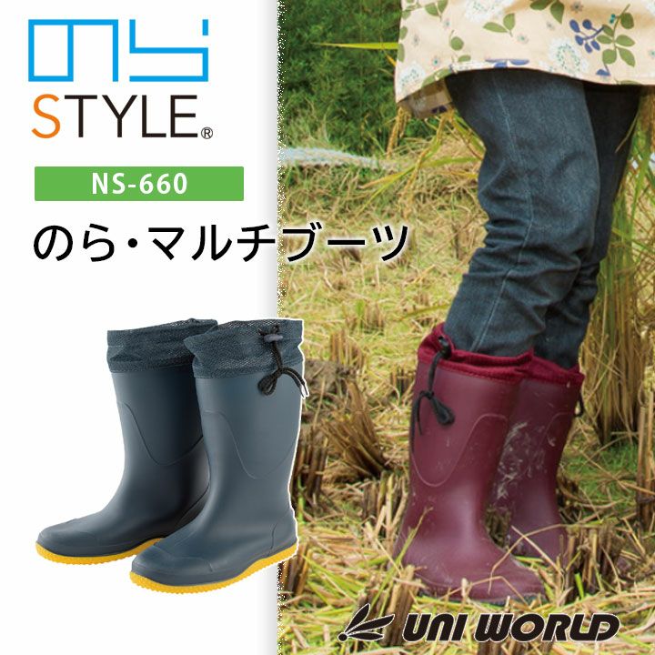 のらスタイル 長靴 靴 ブーツ NS-660 軽量 農業 農家 園芸 ガーデニング 畑 DIY アウトドア ユニワールド 耐油 作業服 作業着 【SS~3L】