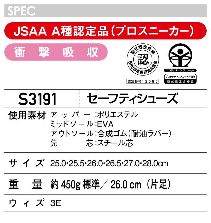 他の画像を見る デザイン性、ホールド性に優れたスポーツテイストシューズ。 Z-DRAGON 安全靴 セーフティシューズ S3191 ローカット JSAA A種認定品 プロスニーカー 紐タイプ おしゃれ かっこいい 自重堂 作業靴 スチール芯 本体価格 ¥ 3,036 税込 在庫切れ カートに入れる お気に入りに登録する