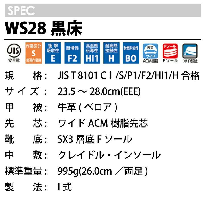他の画像を見る もっと歩きたくなる安全靴 ウォーキングセーフティシリーズ 安全靴 WS28 黒床 シモン セーフティシューズ 溶接 耐熱 ガス切断作業 JIS T8101 軽量 軽い 疲れにくい SX3層底Fソール 耐滑性 柔軟性 クッション性 安定性 抗菌 防臭 足にフィット 耐油 耐薬品性 つまづき防止 トゥスプリング かっこいい おしゃれ 本体価格 ¥ 10,750 税込 在庫切れ カートに入れる お気に入りに登録する