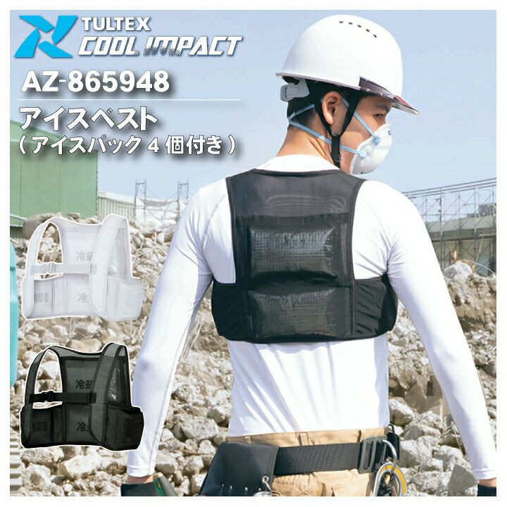 アイスベスト アイスパック 4個付き 男女兼用 アイトス 865948 冷却 夏用 クールベスト 保冷剤【春夏】作業着 作業服 涼しい アウトドア 熱中症対策 現場作業者向け 草刈り時にも 節電 空調ファン付きウェア スポーツ レジャー アウトドア メンズ レディース 脇 冷やす