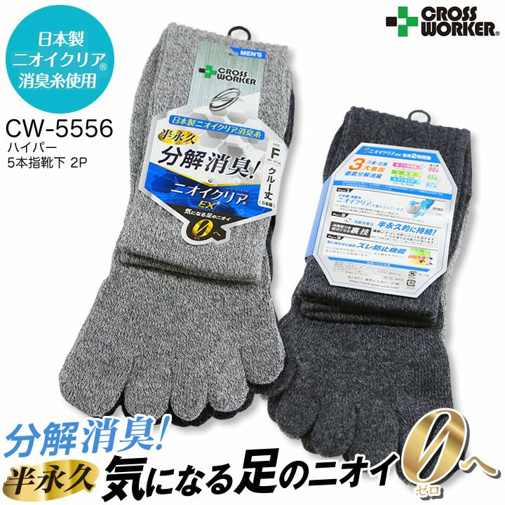 他の画像を見る 半永久!分解消臭!気になる足のニオイを0へ。日本製ニオイクリア消臭糸使用。 ハイパー 5本指付き 消臭 靴下 2P CW-5556 クルー丈 杢調 ニオイクリア ズレ防止 作業用 作業服 作業着 2足組 足 くさい お悩み 本体価格 ¥ 1,320 税込 在庫切れ 詳細を見る お気に入りに登録する