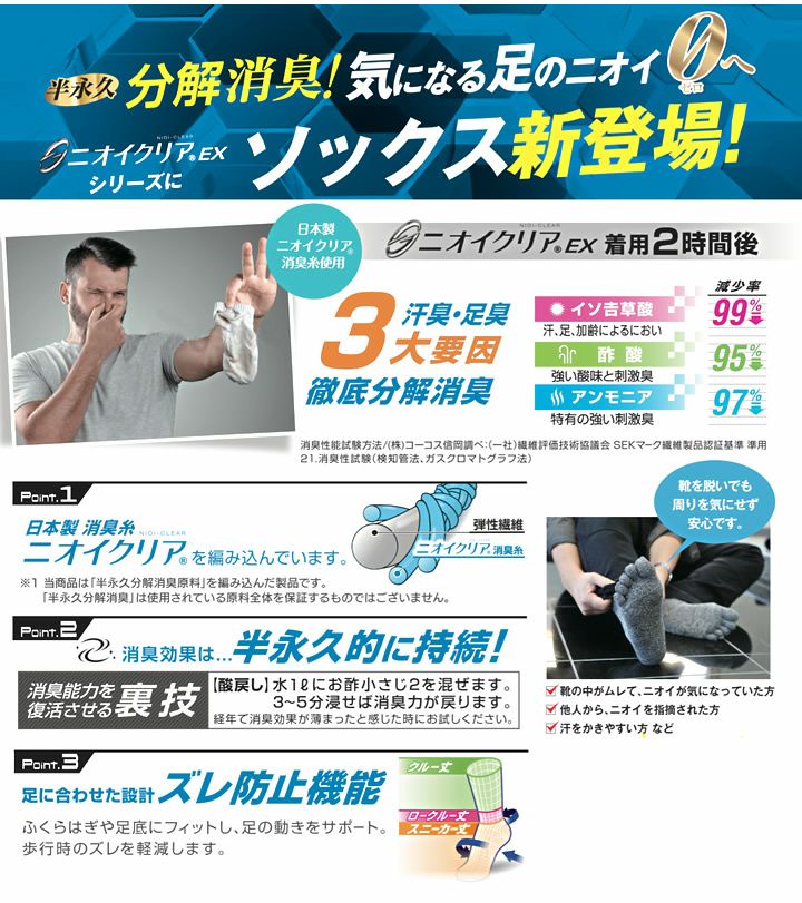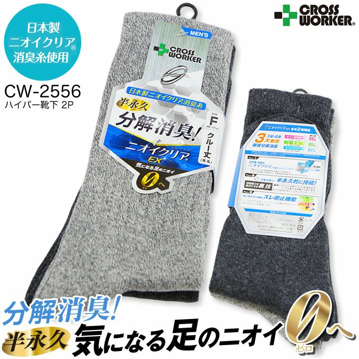 他の画像を見る 半永久!分解消臭!気になる足のニオイを0へ。日本製ニオイクリア消臭糸使用。 ハイパー 消臭 靴下 2P CW-2556 クルー丈 先丸 杢調 ニオイクリア ズレ防止 作業用 作業服 作業着 足 くさい お悩み 本体価格 ¥ 1,320 税込 在庫切れ 詳細を見る お気に入りに登録する