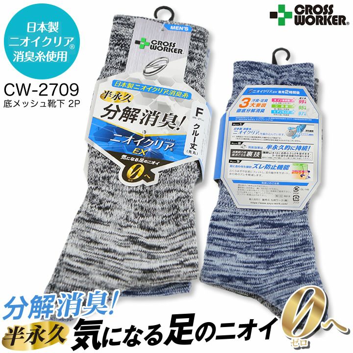 他の画像を見る 半永久!分解消臭!気になる足のニオイを0へ。日本製ニオイクリア消臭糸使用。 消臭 靴下 先丸 2P CW-2708 クルー丈 底メッシュ ニオイクリア 無地 黒 ズレ防止 作業用 作業服 作業着 ブラック 足 くさい お悩み 本体価格 ¥ 1,320 税込 在庫切れ 詳細を見る お気に入りに登録する