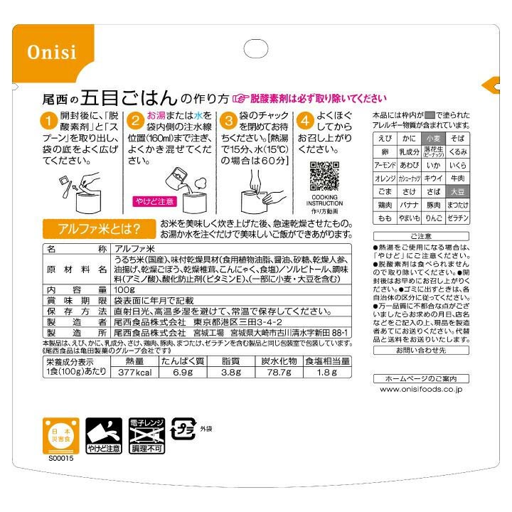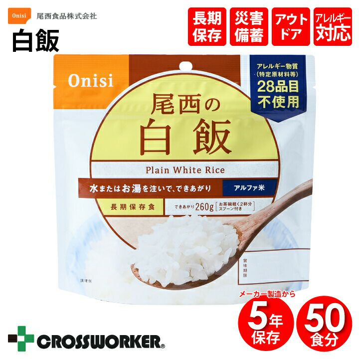 【50食セット】非常食 尾西のアレルギー対応 五目ごはん 尾西食品 メーカー製造から5年保存 アレルギー対応 ご飯 国産米 防災グッズ 防災用品 長期保存 災害用備蓄 会社 企業 施設 学校 公民館 豪雨 豪雪 大雨 台風対策 地震 災害対策 キャンプ 登山 コロナ 自宅療養 食料