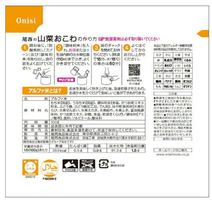 【50食セット】非常食 尾西の山菜おこわ 尾西食品 メーカー製造から5年保存 アレルギー対応 国産米 防災グッズ 防災用品 長期保存 災害用備蓄 会社 企業 オフィス 施設 学校 公民館 豪雨 豪雪 大雨 台風対策 地震 災害対策 キャンプ 登山 おいしい コロナ 自宅療養 食料