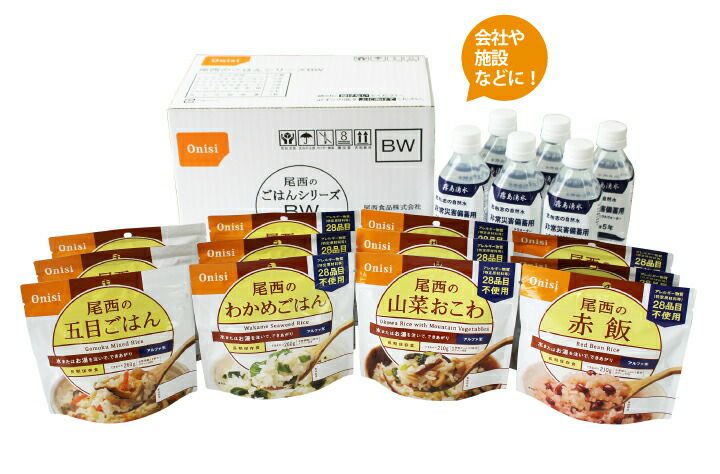 尾西のごはんシリーズ(和風メニュー+保存水6本) 尾西食品 メーカー製造から5年保存 非常食 ご飯 国産米 防災グッズ 防災用品 長期保存 災害用備蓄 会社 企業 オフィス 施設 学校 公民館 豪雨 豪雪 大雨 台風対策 地震 災害対策 キャンプ 登山 おいしい コロナ 自宅療養 食料