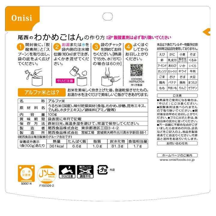 【50食セット】非常食 尾西のわかめご飯 尾西食品 メーカー製造から5年保存 アレルギー対応 国産米 防災グッズ 防災用品 長期保存 災害用備蓄 会社 企業 オフィス 施設 学校 公民館 豪雨 豪雪 大雨 台風対策 地震 災害対策 キャンプ 登山 おいしい コロナ 自宅療養 食料