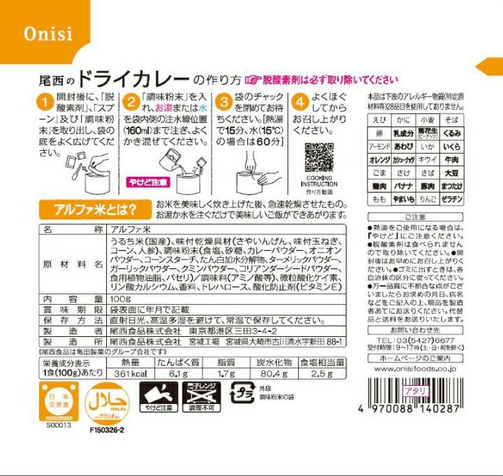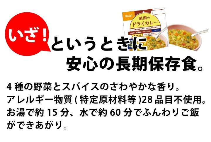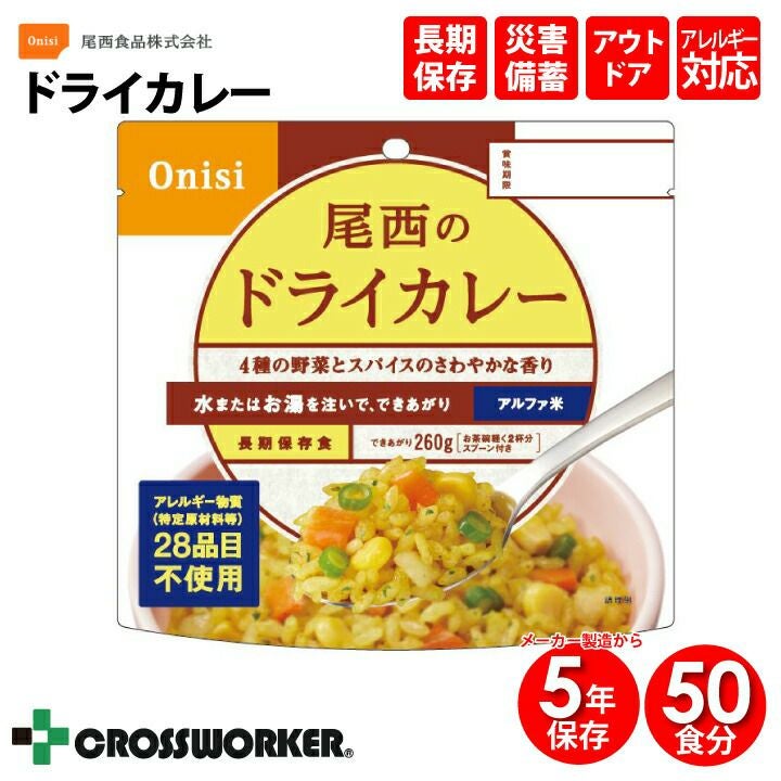 【50食セット】尾西のドライカレー 尾西食品 メーカー製造から5年保存 アレルギー対応 非常食 国産米 防災グッズ 防災用品 長期保存 災害用備蓄 会社 企業 オフィス 施設 学校 公民館 豪雨 豪雪 大雨 台風対策 地震 災害対策 キャンプ 登山 おいしい コロナ 自宅療養 食料