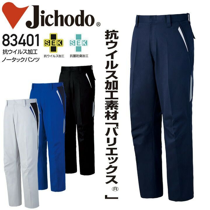 抗ウイルス加工 ノータックパンツ 自重堂 83401 抗菌 防臭 帯電防止 男女兼用 メンズ レディース スラックス ズボン 作業服 作業着