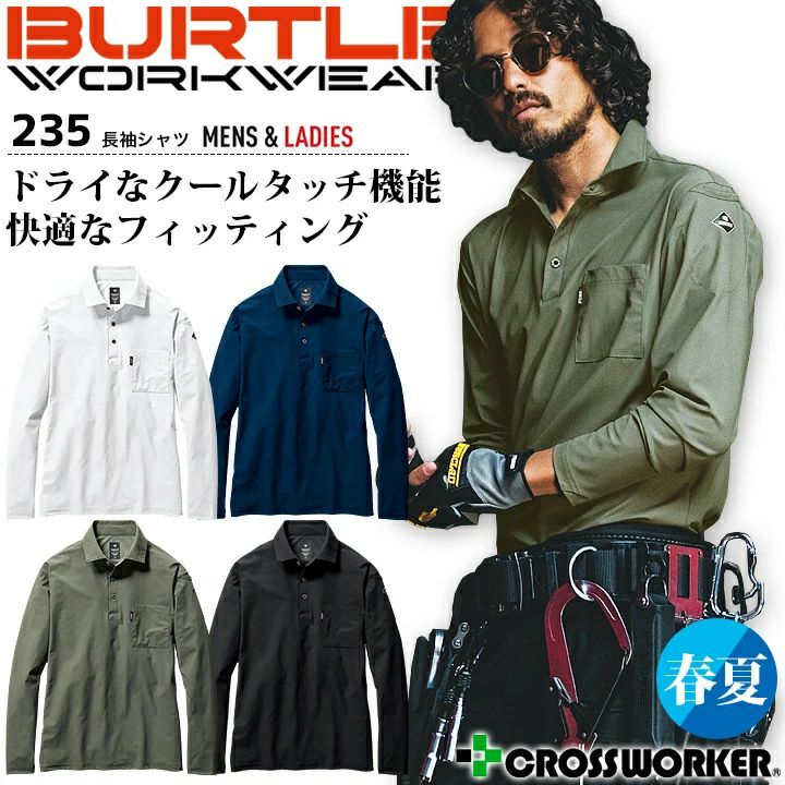 バートル 長袖シャツ 235 春夏 男女兼用 メンズ レディース ストレッチ UVカット 接触冷感 吸水速乾 消臭 作業服 作業着 BURTLE【3XL】