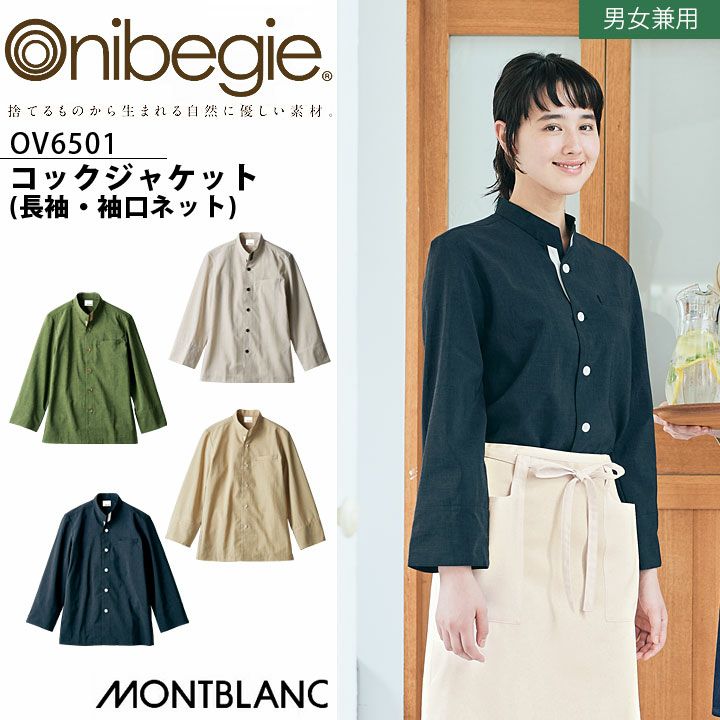 コックジャケット(長袖・袖口ネット) 男女兼用 住商モンブラン OV6501 オニベジ 厨房 キッチン 制服 レストラン 飲食業 カフェ ユニフォーム カジュアル おしゃれ メンズ レディース SDGs サスティナブル 環境配慮 制菌
