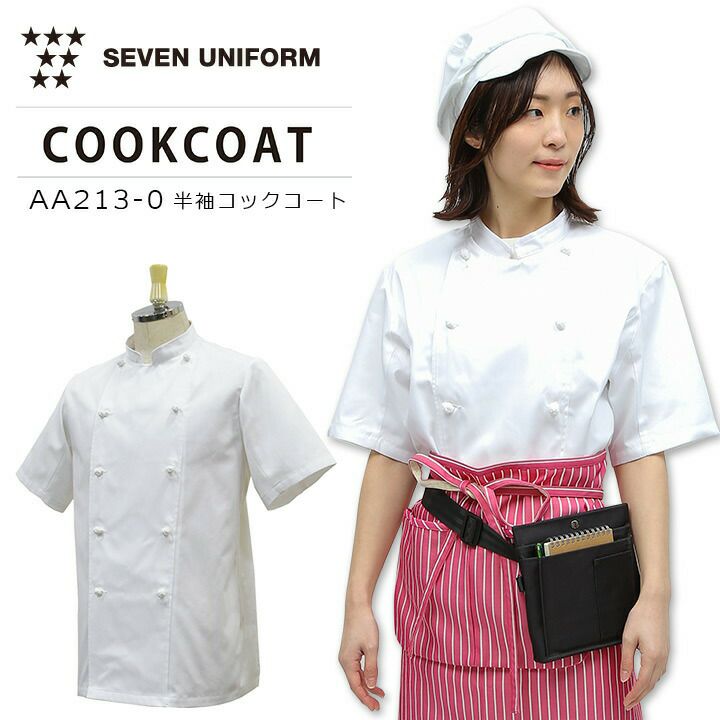 半袖コックコート セブンユニフォーム AA213-0 厨房 キッチン 飲食業 レストラン コックウェア 男女兼用 軽量 涼しい 通気性 防透性 制電 白衣 SEVEN UNIFORM【SS-LL】