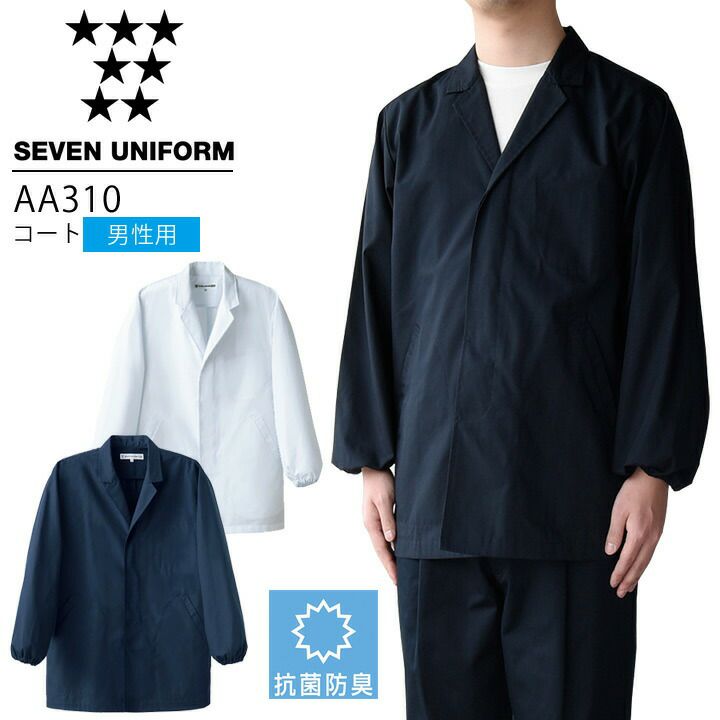 セブンユニフォーム AA310 コート 長袖 男性用 メンズ 抗菌防臭 レストラン 厨房 白衣 飲食店