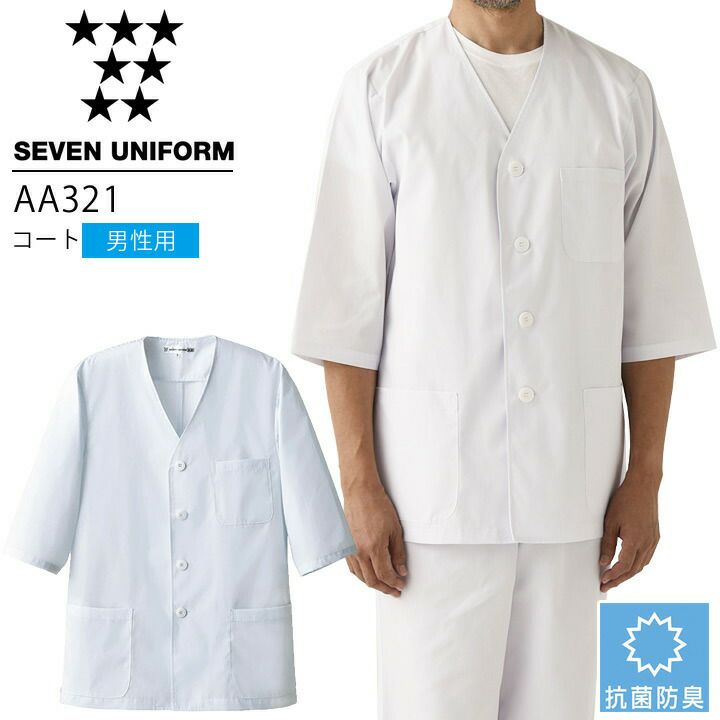 セブンユニフォーム AA321 コート 七分袖 男性用 メンズ 抗菌防臭 レストラン 調理用 厨房 白衣 飲食店