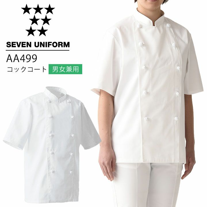 セブンユニフォーム AA499 コックコート 半袖 ダブル 男女兼用 メンズ レディース レストラン 調理用 厨房 白衣 飲食店
