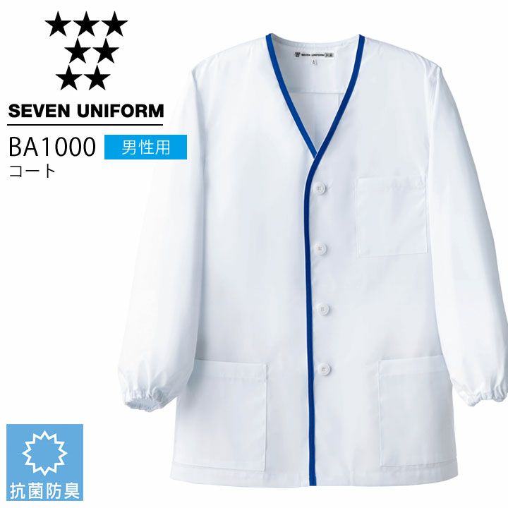 セブンユニフォーム BA1000 コート 長袖 男性用 メンズ 抗菌防臭 レストラン 調理用 厨房 白衣 飲食店