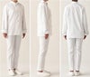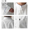 カラーパイピングがデザインされたシングル合わせのコックコート。