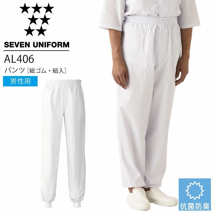 セブンユニフォーム AL406 パンツ(総ゴム・紐入) 男性用 メンズ 抗菌防臭 レストラン 調理用 厨房 白衣 飲食店