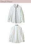 襟と前立てにラインアクセントをつけ、細いタイを締めているようなイメージのシャツ。