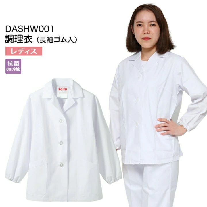 【メール便送料無料※代引不可】調理衣 レディース 女性用 長袖 ゴム入り DASHW001 住商モンブラン 抗菌(O157対応) 白衣 コック 厨房 キッチン 日本料理 割烹 居酒屋 板前 料理 制服 住商モンブラン
