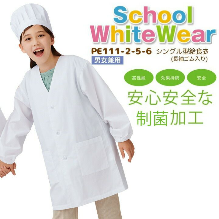 シングル型給食衣(長袖ゴム入り) PE111-2-5-6