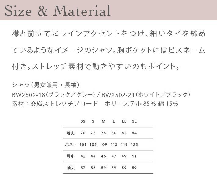 他の画像を見る 襟と前立てにラインアクセントをつけ、細いタイを締めているようなイメージのシャツ。 長袖シャツ 男女兼用 メンズ レディース 住商モンブラン BW2502 接客 制服 レストラン 飲食業 カフェ ユニフォーム ホール ブランシェ 本体価格 ¥ 5,104 税込 カートに入れる お気に入りに登録する