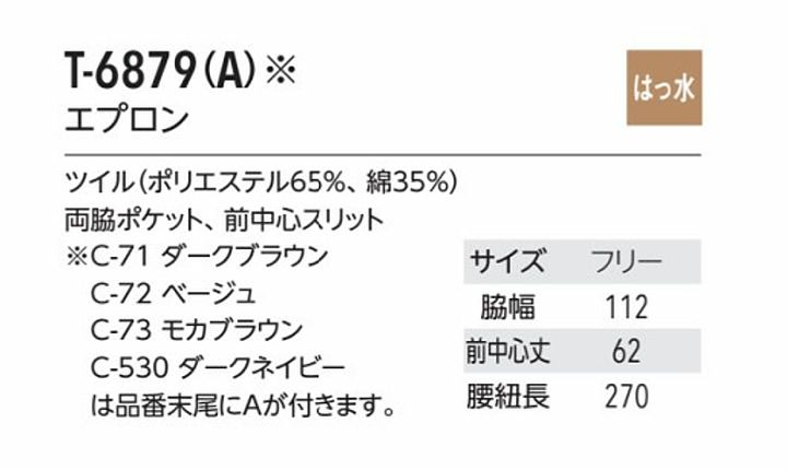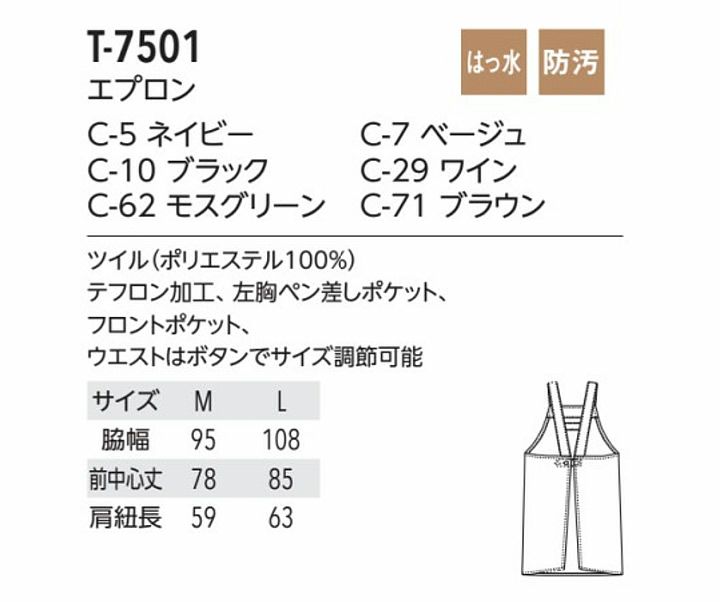 他の画像を見る 撥水仕様。選べる6色。ウエストはボタンでサイズ調整可能。 アルベ エプロン T-7501 arbe 撥水 防汚 メンズ レディース 男女兼用 飲食店 ユニフォーム 制服 カフェ サービス キッチン 接客業 厨房 レストラン チトセ 本体価格 ¥ 2,530 税込 カートに入れる お気に入りに登録する
