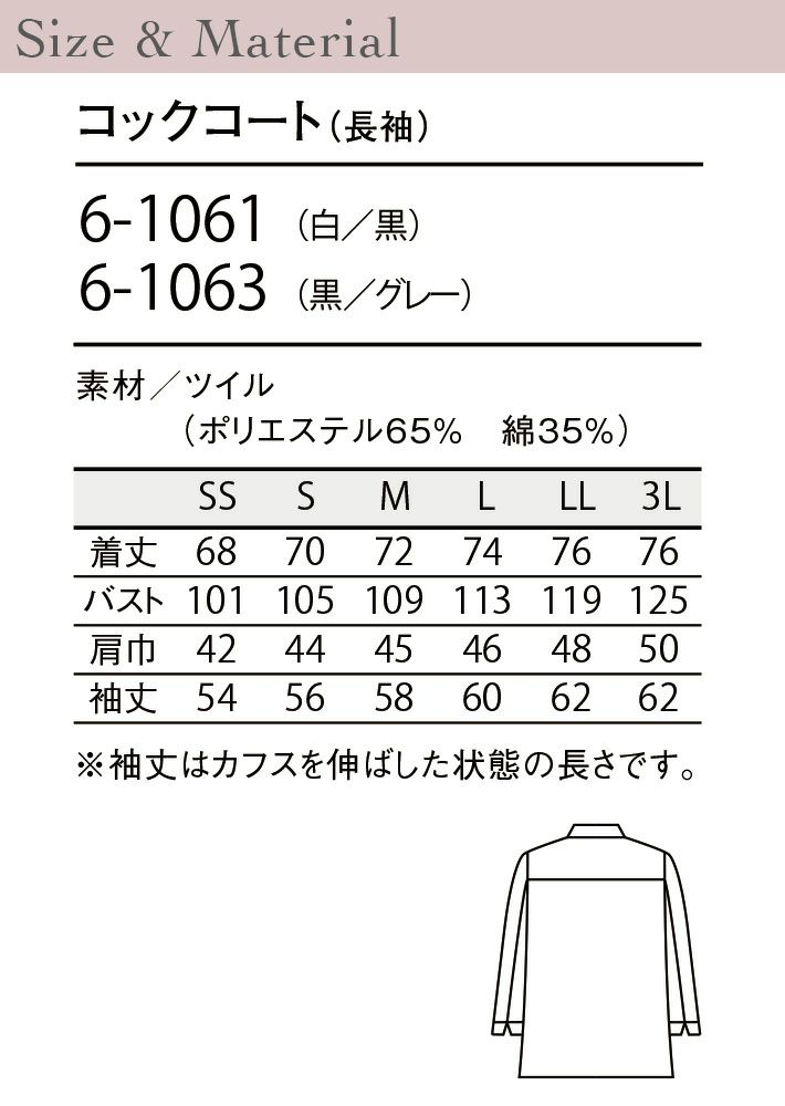 他の画像を見る 襟もとにパイピングをあしらった、エッジの効いたモードなデザイン。 長袖コックコート 男女兼用 住商モンブラン 6-1061 6-1063 メンズ レディース コック 厨房 キッチン 料理 制服 レストラン 飲食業 調理 ブランシェ 本体価格 ¥ 5,720 税込 カートに入れる お気に入りに登録する