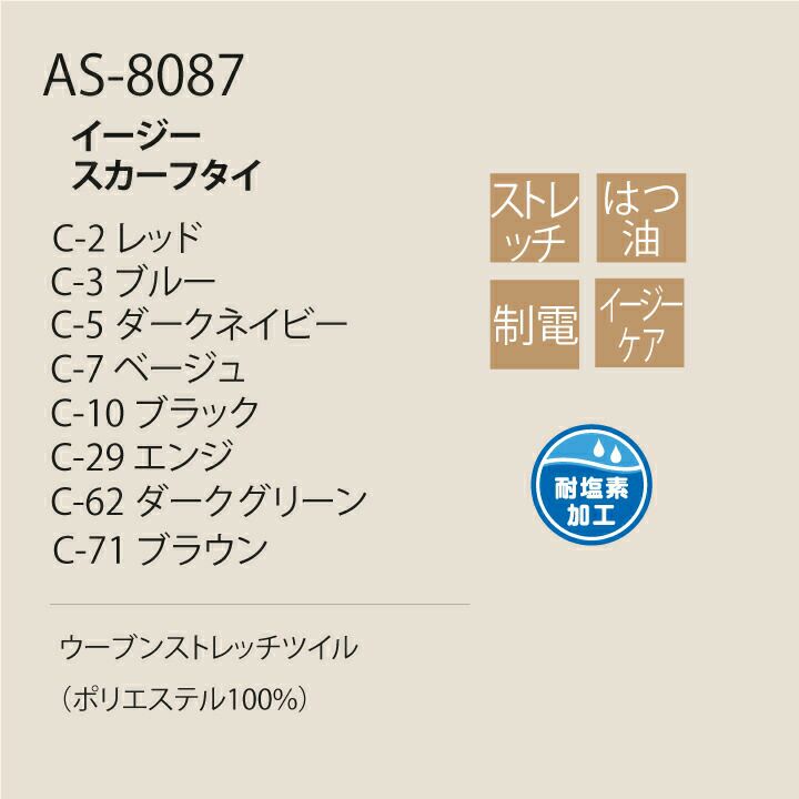 他の画像を見る 塩素系漂白剤でも退色しにくいスカーフタイ スカーフタイ AS8087 AS-8087 アルベ チトセ ネクタイ風 耐塩素加工 漂白剤に強い ストレッチ 撥油 制電 カフェ レストラン 飲食店 制服 シェフ コック 厨房 おしゃれ【メール便送料無料】 本体価格 ¥ 1,705 税込 在庫切れ カートに入れる お気に入りに登録する