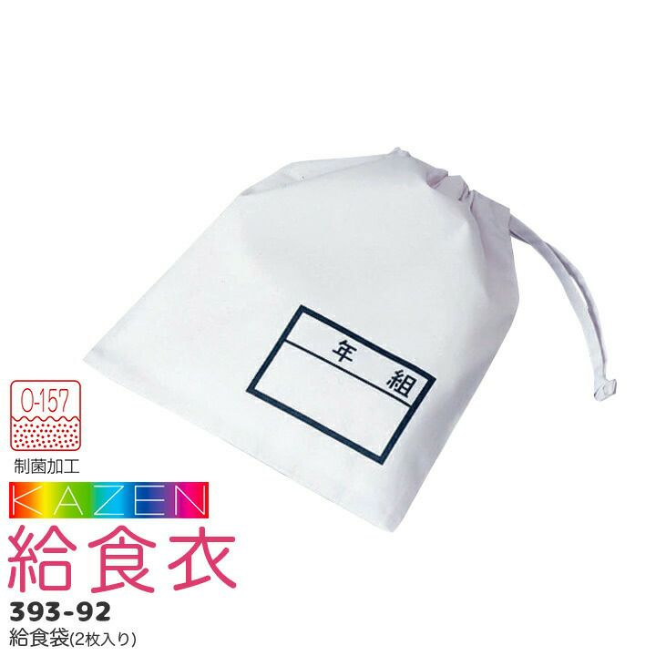 給食袋(2枚入り)393-92 給食衣 制菌 O-157 男女兼用 キッズ 児童用 学童用 子供用 小学生 小学校 サンアロー カゼン KAZEN