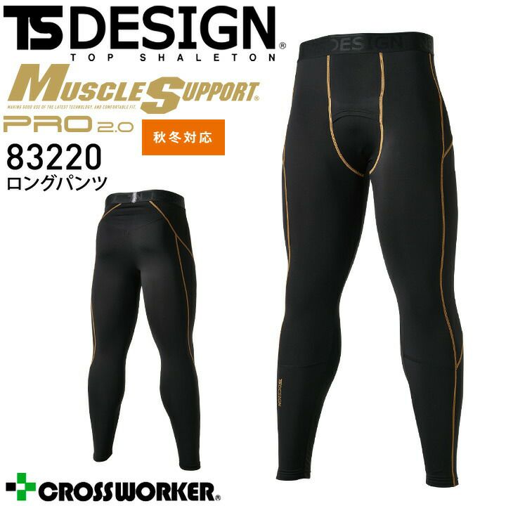 TS-DESIGN ロングパンツ 83220 秋冬 コンプレッション インナーパンツ インナーウェア メンズ ストレッチ 吸汗速乾 消臭 保温 補強 制電 スポーツ 作業服 作業着 藤和【S-LL】