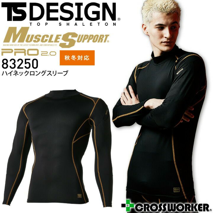 TS-DESIGN ハイネックロングスリーブ 83250 秋冬 コンプレッション インナーウェア 長袖 メンズ ストレッチ 吸汗速乾 消臭 保温 補強 制電 スポーツ作業服 作業着 藤和【S-LL】
