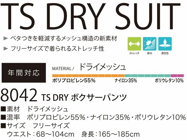 他の画像を見る 「肌に水分を残さない」だから汗や雨で濡れても衣服がカラダにはりつかない。 TS DESIGN ボクサーパンツ 8042 ドライ メッシュ コンプレッション ストレッチ 通気性 インナーパンツ 【年間対応】作業着 作業服 藤和 本体価格 ¥ 2,145 税込 カートに入れる お気に入りに登録する