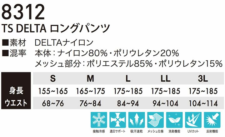 他の画像を見る デニムなどの綿リッチなアイテムと相性が良く、ドライな素材感 TS DESIGN インナーパンツ TS DELTA ロングパンツ 8312 コンプレッション 高強度 接触冷感 吸汗速乾 消臭 UVカット 【春夏】作業着 作業服 藤和 本体価格 ¥ 2,629 税込 カートに入れる お気に入りに登録する