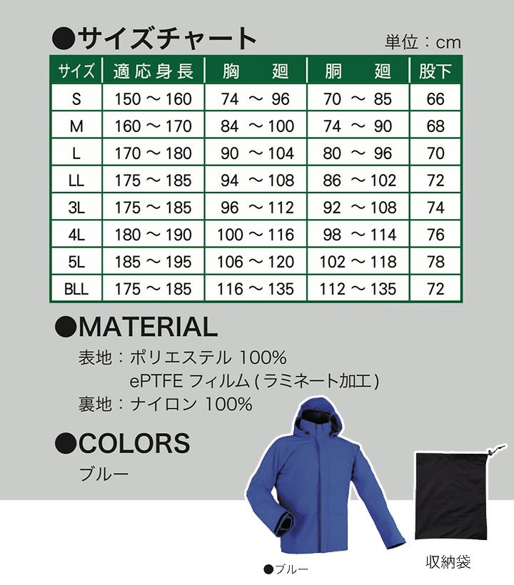 他の画像を見る GORE-TEX(ゴアテックス)ファブリックレインウェア世界クラスの防水・透湿性能で雨天時のすべての動きを雨から守り湿気を逃します洗濯機で丸洗いもOK ゴアテックス レインウェア 上下セット AP-2000 AP2000 合羽 レインスーツ 3レイヤー 透湿 防水 撥水 防風 大雨 台風 男女兼用 メンズ レディース バイク 自転車 通勤 通学 災害対策 ボランティア活動 カッパ 本体価格 ¥ 27,500 税込 在庫切れ カートに入れる お気に入りに登録する