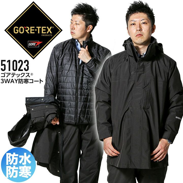 送料無料 ゴアテックス 3WAY防寒コート 51023 アウター レインウェア メンズ 男性用 透湿 防水 防寒 防風 撥水 防寒着 防寒服 作業着 作業服 通勤 防災【M-LL】