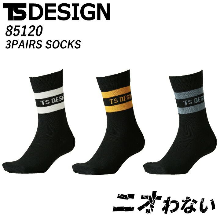 2024SS 新商品 消臭 靴下 TS DESIGN 85120 3PAIRS SOCKS ソックス 作業 スポーツ ジョギング アウトドア 足 におわない 臭くならない 作業服 作業着 TS デザイン 藤和