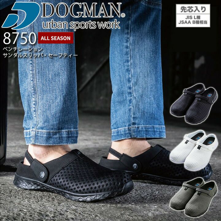 サンダル スリッパ 8750 セーフティー ドッグマン ベンチレーション スリッポン クロックス風 普段履き 安全靴 抗菌 防臭 樹脂先芯入り メッシュ オールシーズン 作業靴 作業着 作業服 中国産業 DOGMAN